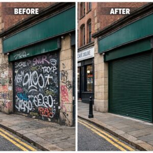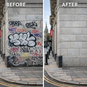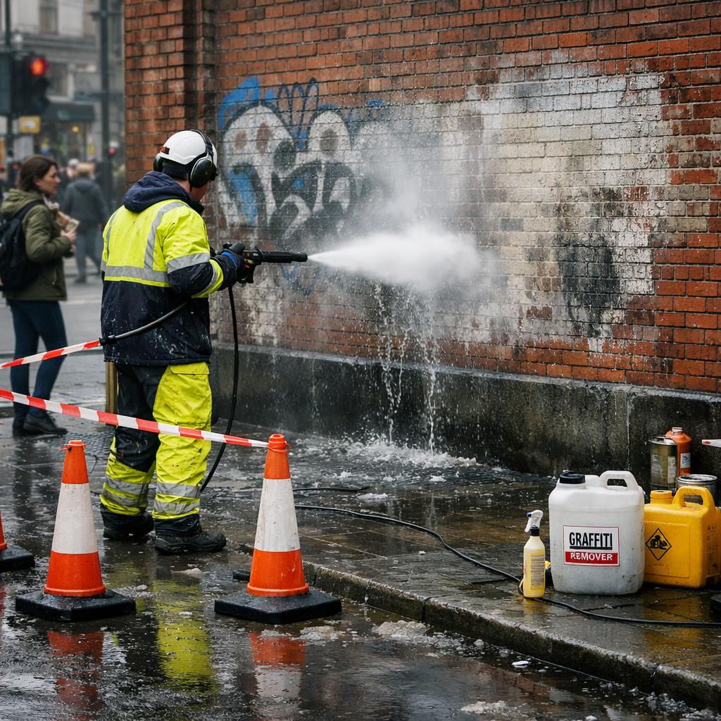 Professional graffiti removal carried out using controlled, surface-safe methods designed to minimise disruption and avoid further damage to buildings and public spaces.